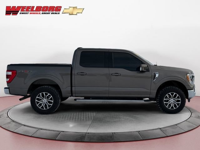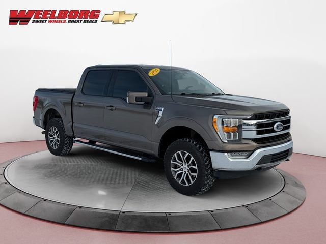 Weelborg Chevrolet of New Ulm is proud to present this 2021 Ford F-150 Lariat. 18 Machined-Aluminum Wheels, 4-Wheel Disc Brakes, ABS brakes, Air Conditioning, AM/FM radio: SiriusXM with 360L, Automatic temperature control, Class IV Trailer Hitch Receiver, Driver door bin, Dual front impact airbags, Dual front side impact airbags, Emergency communication system: SYNC 4 911 Assist, Equipment Group 500A Standard, Exterior Parking Camera Rear, Front anti-roll bar, Front Center Armrest w/Storage, Front dual zone A/C, Front wheel independent suspension, Illuminated entry, Low tire pressure warning, Navigation system: Connected Navigation (90-Day Trial), Occupant sensing airbag, Onboard 400W Outlet, Outside temperature display, Overhead airbag, Overhead console, Panic alarm, Passenger door bin, Rear step bumper, Rear window defroster, Remote keyless entry, Security system, Speed control, Speed-sensing steering, Tilt steering wheel, Traction control.