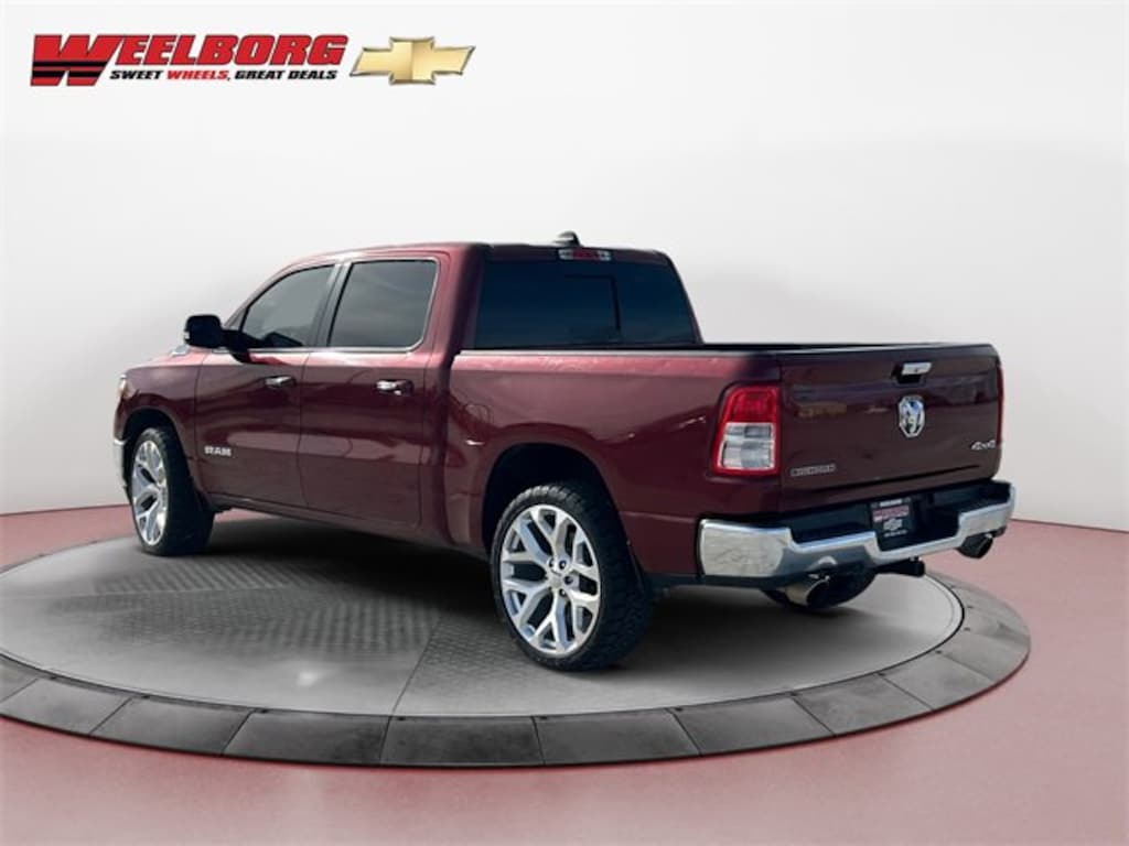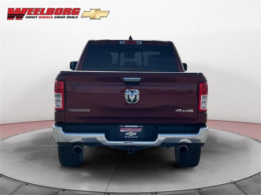 Weelborg Chevrolet of New Ulm is proud to present this 2019 Ram 1500 Big Horn/Lone Star. 1-Year SiriusXM Radio Service, 2 USB Full Function/Charge Only Media Hub, 4-Wheel Disc Brakes, 8.4 Touchscreen Display, ABS brakes, Air Conditioning ATC w/Dual Zone Control, AM/FM radio, Apple CarPlay, Auto-Dimming Exterior Driver Mirror, Auto-Dimming Rear-View Mirror, Big Horn IP Badge, Big Horn Non-BSG Level 2 Group w/Media Hub (DISC), Class IV Receiver Hitch, Cluster 7.0 TFT Color Display, Dampened Tailgate, Driver door bin, Dual front impact airbags, Dual front side impact airbags, Exterior Mirrors Courtesy Lamps, Exterior Mirrors w/Supplemental Signals, Foam Bottle Insert (Door Trim Panel), For More Info, Call 800-643-2112, Front anti-roll bar, Front Center Armrest w/Storage, Front wheel independent suspension, Glove Box Lamp, Google Android Auto, Heated Front Seats, Heated Steering Wheel, Illuminated entry, Integrated Center Stack Radio, Low tire pressure warning, Occupant sensing airbag, Outside temperature display, Overhead airbag, Overhead console, Panic alarm, ParkSense Front/Rear Park Assist w/Stop, ParkView Rear Back-Up Camera, Passenger door bin, Power 4-Way Driver Lumbar Adjust, Power 8-Way Driver Seat, Power Adjustable Pedals, Power Heated Fold Away Mirrors, Power-Folding Mirrors, Quick Order Package 25Z Big Horn/Lone Star, Radio: Uconnect 4 w/8.4 Display, Rear anti-roll bar, Rear Dome w/On/Off Switch Lamp, Rear Power Sliding Window, Rear Window Defroster, Remote keyless entry, Remote Start System, Security Alarm, Single Disc Remote CD Player, SiriusXM Satellite Radio, Speed control, Steering Wheel Mounted Audio Controls, Sun Visors w/Illuminated Vanity Mirrors, Tilt steering wheel, Universal Garage Door Opener, Wheels: 18 x 8.